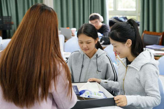 “看到大家埋首书海、全力以赴的样子,真的特别为你们骄傲。”一踏入教室,陈小芳书记便亲切夸赞同学们努力奋斗的模样,对大家为梦想执着拼搏的精神给予高度肯定。随后,陈小芳书记与辅导员们将精心筹备的“考研助力大礼包”逐一送到学子手中——礼包里既有学院专属定制的“开挂”衣架,以“考研‘开挂’,梦想开花”的美好寓意寄托上岸祝福;还有提神的加油咖啡、舒缓眼疲劳的蒸汽眼罩,以及承载着老师亲笔祝福的明信片等。此外,学院“柚见阳光”心理部也准备了设计精巧的小红花激励板,印着“以笔为剑,不负韶华”等暖心话语,搭配上象征希望的小红花发夹与“梦想院校入场券”。每一份礼物都传递着学院对管院学子的牵挂与祝福。