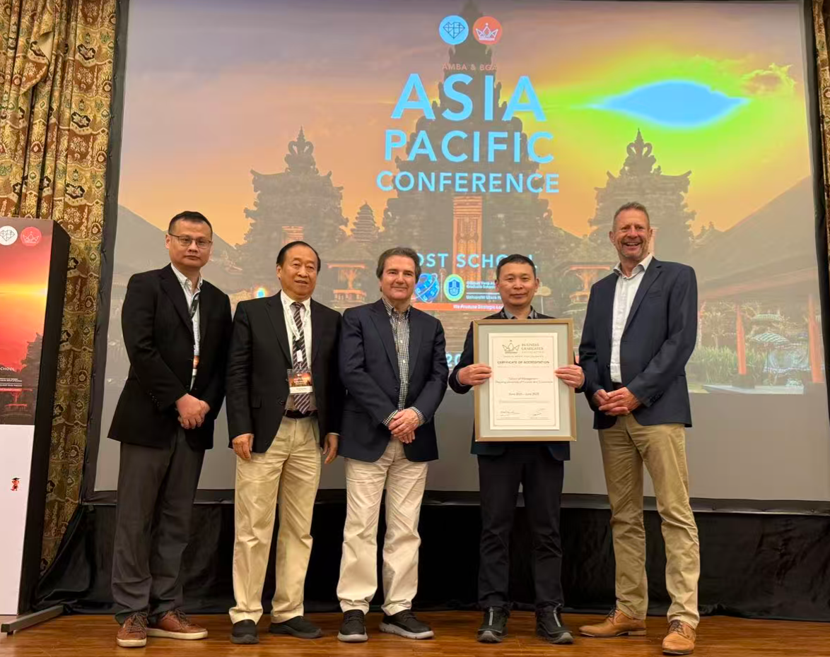 2025年11月23日至26日,AMBA&BGA亚太年会在印度尼西亚举行,来自亚太地区的60多所高校商学院的百余名代表出席了本次会议。会议围绕教学中的AI、案例开发、可续发展管理、AMBA&BGA教育联盟等多个主题,共同探讨商学院教育的未来趋势等前沿议题。副院长张雷带队参会并获颁BGA金牌认证证书。