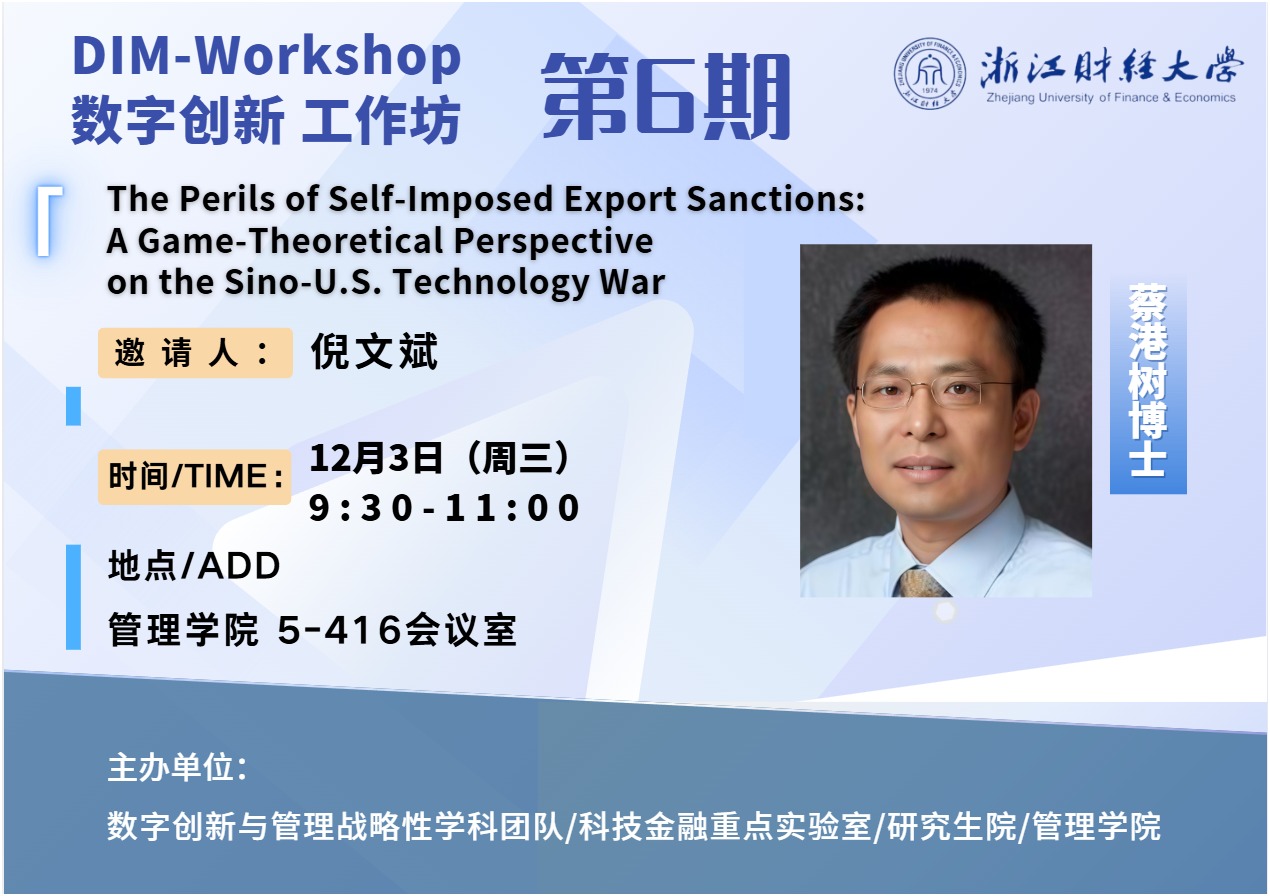 嘟嘟成人网 新财经战略系列学术活动2025年第61期【数字创新工作坊】 蔡港树 The Perils of Self-Imposed Export Sanctions: A Game-Theoretical Perspective on the Sino-U.S. Technology War