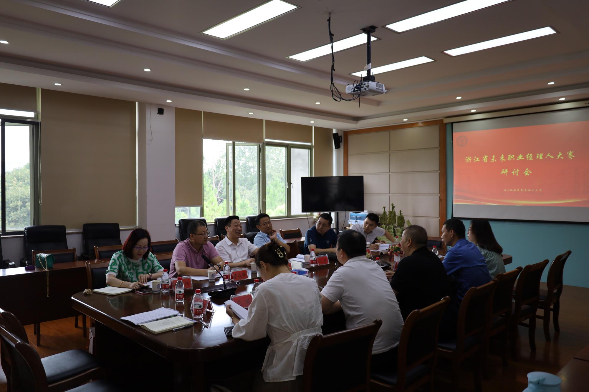 9月23日上午,浙江省未来职业经理人大赛研讨会在学院楼410召开。浙江省职业经理人协会秘书长沈建、副秘书长沈家琪,浙江省中经发政企合作服务中心主任王前利、副主任刘丽红、主任助理王明,学院党委书记黄卫华、副书记吴玻、副院长张雷、大赛秘书处洪雁、应瑛、杨文超等出席了会议。