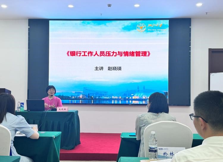 针对银行从业人员面临的压力与情绪问题,培训班专门设置了压力情绪管理课程。邀请到了浙江大学的赵晓瑛教授,赵老师用几十年从业和教学经验,通过科学的方法和实用的技巧,帮助学员们学会如何调节工作压力,保持良好的心态,在轻松愉悦的家常中传递了专业的心理学知识,以更加积极的状态投入到工作中。