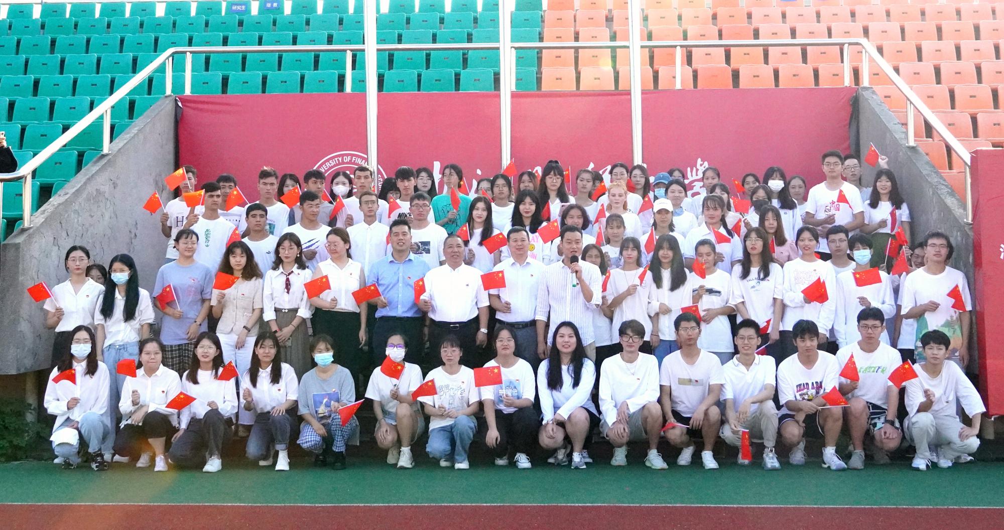 师生齐聚西操场隆重举行国庆升旗仪式。工商学院党委书记黄卫华、党委副书记吴玻、学院专职组织员、辅导员、学生党员、入党积极分子以及全体新疆籍预科班同学在国旗下举行以“庆国庆,颂党情,勇担当,成大材”为主题的爱国思政课,以这庄严的方式向伟大祖国致敬献礼!