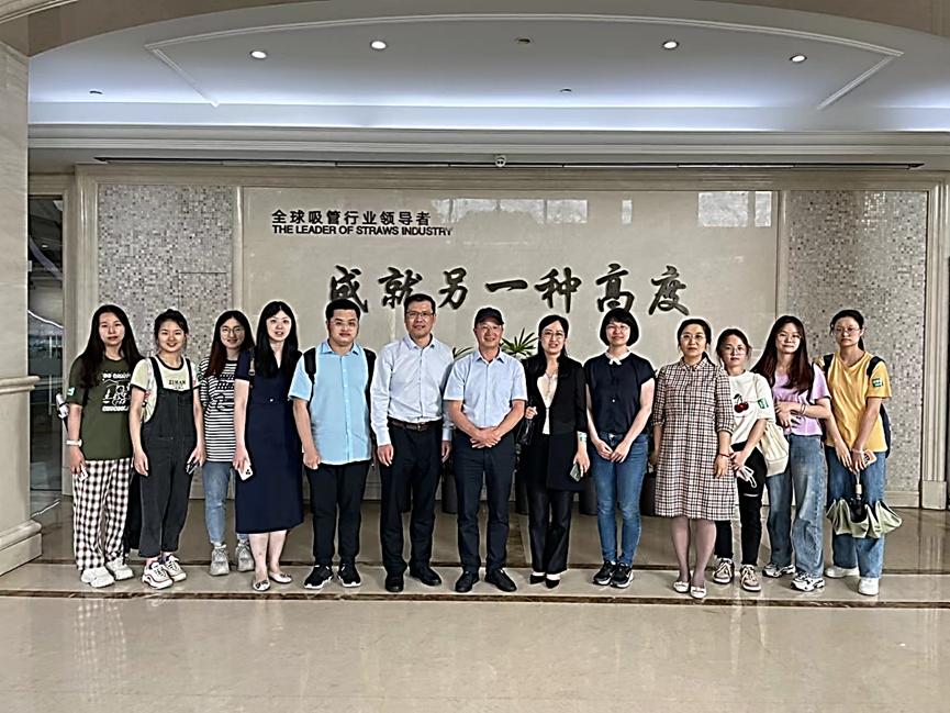 教师以及研究生一行十二人,专程访问了全球最大的饮用吸管生产企业——义乌双童公司。