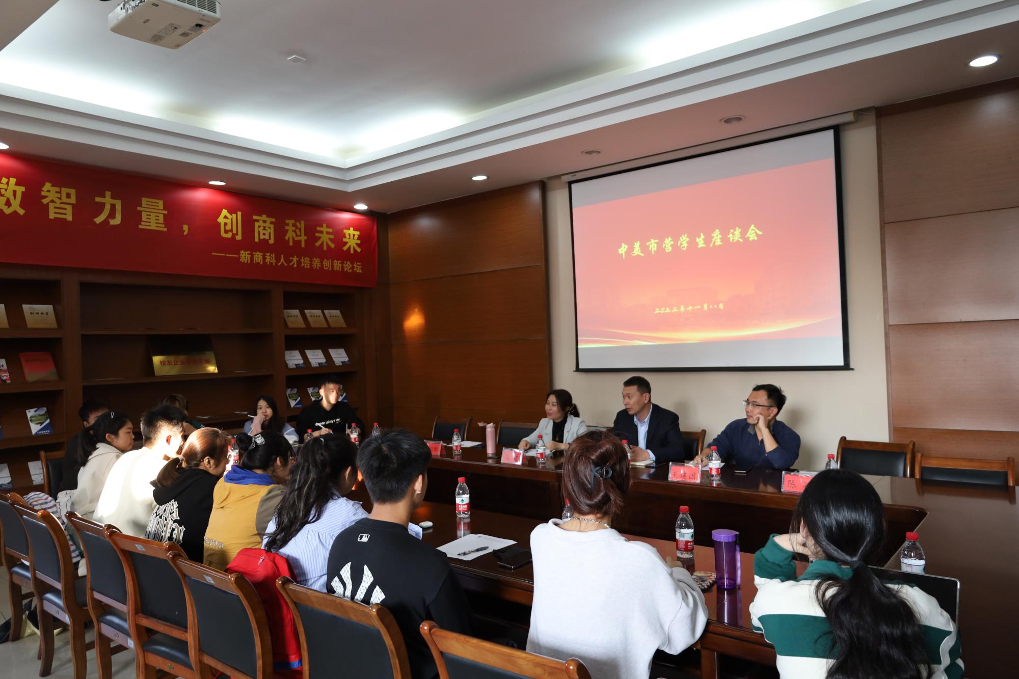 (MBA学院)于11月8日下午15:00-17:00在本院218会议室召开中美合作项目期中学生座谈会。会议由中美合作项目主任王建国副教授主持,学院张雷副院长、冯娟博士、郑枢帆老师和中美合作项目学生代表出席了本次会议。