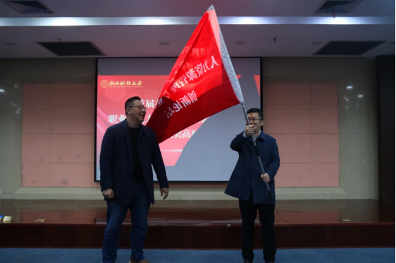 最后,校教务处副处长叶舟代表大赛组委会,将论坛会旗转交给下一届承办高校浙江理工大学经济嘟嘟成人网
