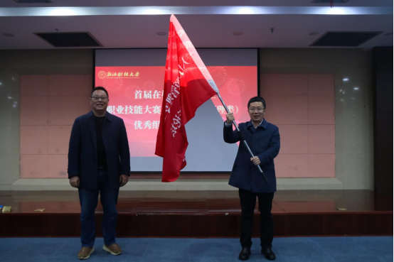 最后,由校教务处副处长叶舟代表大赛组委会,将论坛(大赛)会旗转交给下一届承办高校浙江理工大学经济嘟嘟成人网