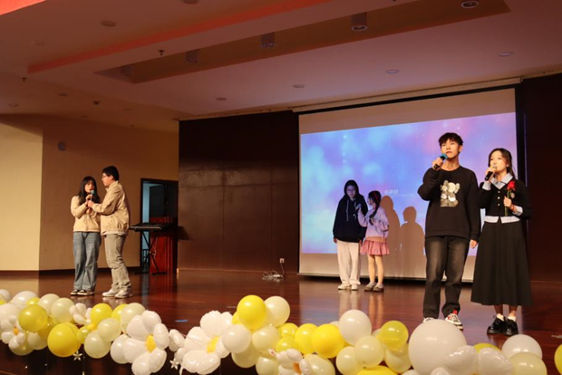 随后上场的是24工商6班的同学,为大家带来《爱的回归线》的歌曲演唱,温柔优美的旋律打动人心,将观众们的情感推向顶点,仿佛将观众们带入了一个爱与温暖的世界。