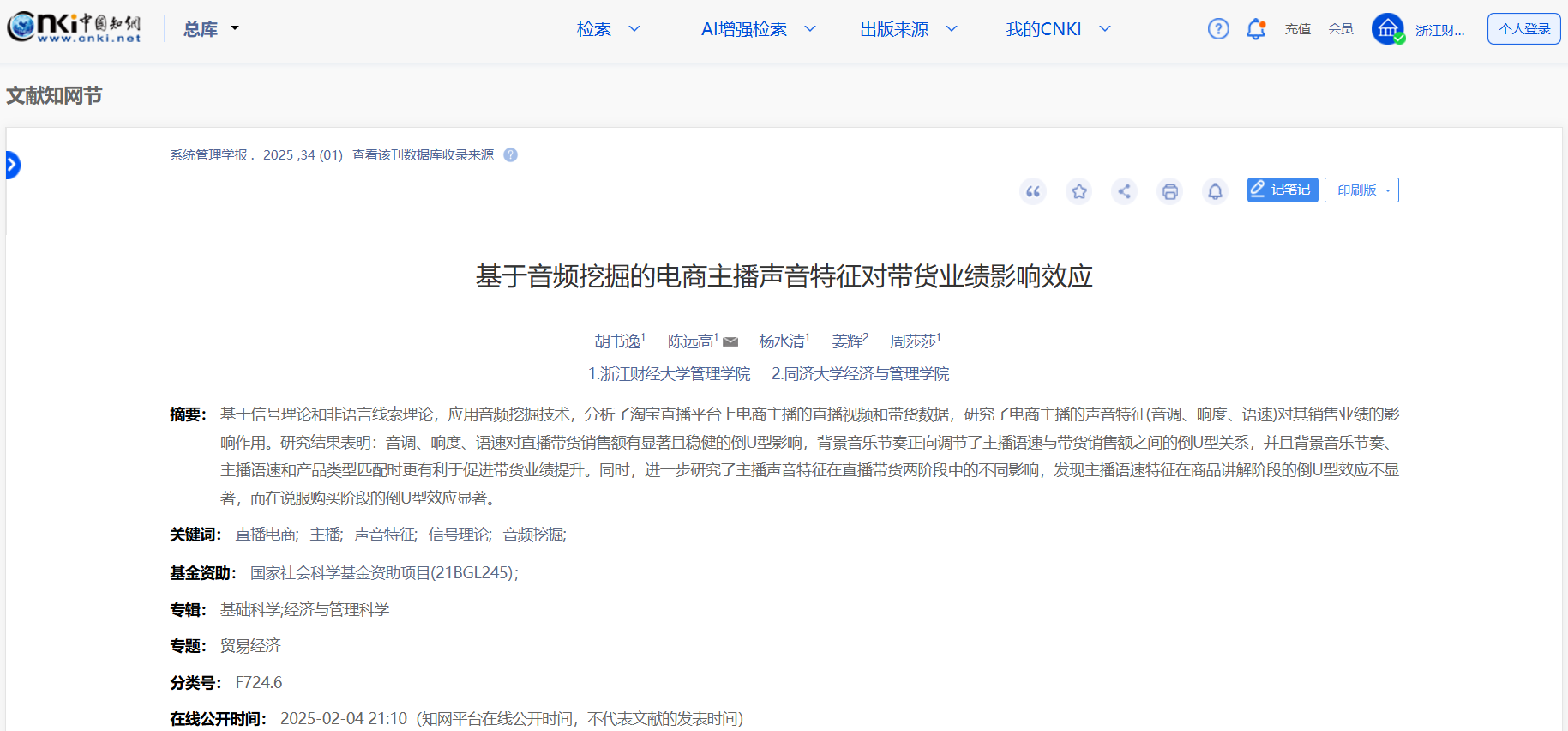 论文题目:基于音频挖掘的电商主播声音特征对带货业绩影响效应