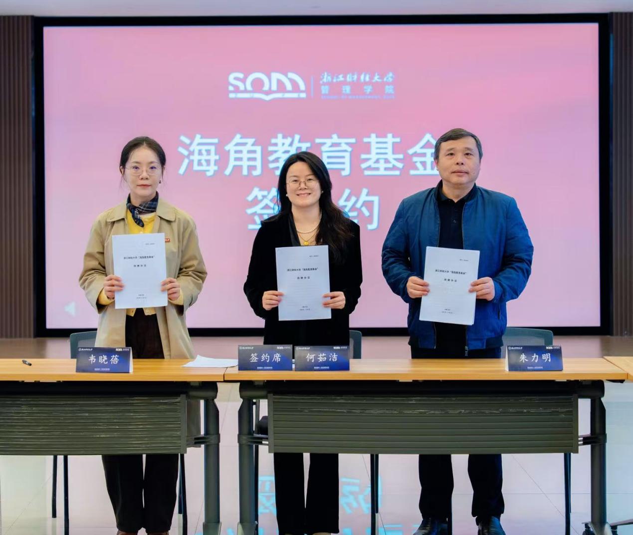 跨学科创新班开班暨海角教育基金捐赠仪式在学校党群服务中心(文化中心309)顺利举行。校党委副书记程爽,项目企业方浙江海角数字科技有限公司董事长竺俊景、总经理何茹洁,校党委宣传部部长王正新、社会合作处处长杨剑勇、校友办公室(校教育基金会)副主任韦晓蓓,嘟嘟成人网