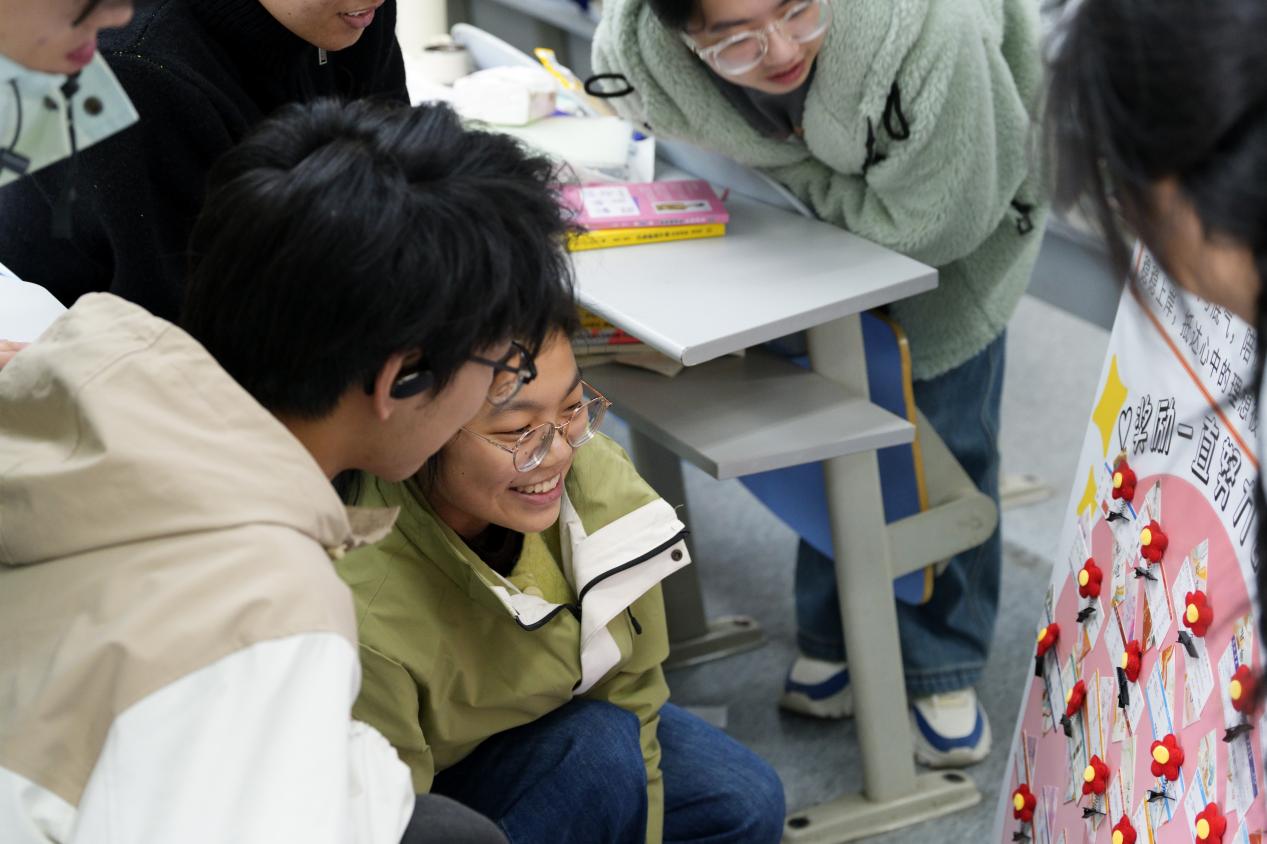 温暖的关怀让考研教室充满了欢声笑语。同学们纷纷拿起小红花发夹别在发间,手捧着“梦想院校入场券”合影留念,脸上洋溢着自信的笑容,眼中闪烁着对未来的憧憬。“这份礼物太暖心了,感觉所有的疲惫都被治愈了。”2026届市场营销(中外合作办学)专业的杜同学表示,学院的慰问让大家深切感受到被重视、被关怀,“我们一定会把这份鼓励转化为冲刺的动力,全力以赴备战考研,不辜负学院的期望。”
