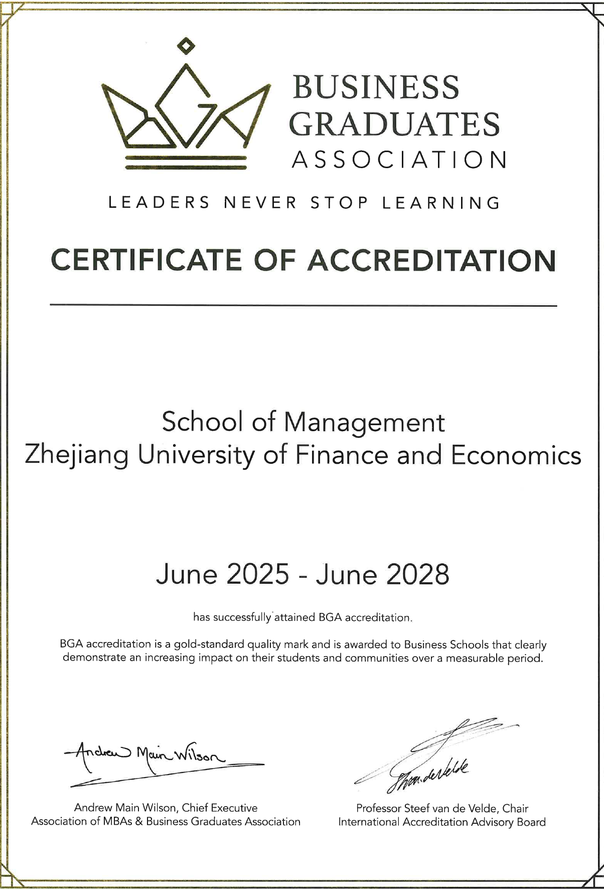 启动实施了详实的认证规划,于2022年获得BGA金牌认证直通资格,先后组织召开多场会议不断完善认证报告,于2025年6月通过现场认证访视。此次在印尼正式获颁金牌认证证书,标志着学院BGA国际认证阶段性工作顺利完成,学院将继续坚持“持续改进”的理念,加强国际交流与合作,不断提升办学水平。