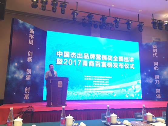 2017年10月24日中国杰出品牌营销奖2017年全国巡讲(宁波站)暨2017甬商百富榜发布仪式在宁波海曙天港禧悦酒店天港厅隆重召开。我校智能家电营销创新实践教育基地负责人陈颖老师应邀出席活动,校通识课程《新媒体时代的公共关系》李晓超老师,校公共关系协会会长徐诗丹同学,及我校访学进修的新疆大学科学技术学院祝振华老师共同出席了本次活动。