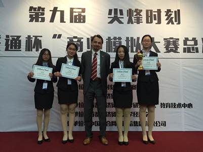 共组织了15支队伍参赛。整个赛程历经6个月,经过层层选拔,最终来自中国人民大学、南开大学、对外经济贸易大学等32所国内高校的43支队伍进入中国区总决赛。决赛由软件模拟比赛、英文团队介绍、商业案例演示三部分组成,商业演示的评委团由高校学者和企业专家组成。嘟嘟成人网