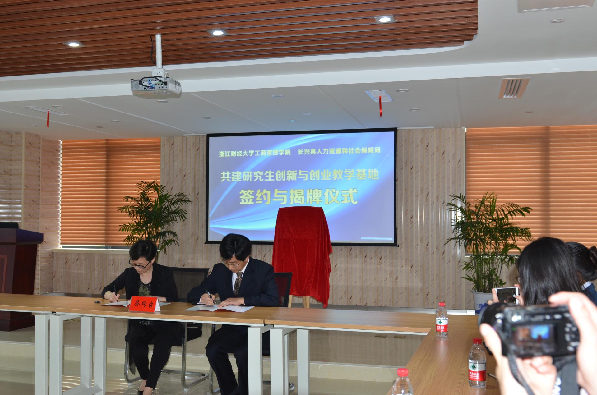 与长兴县人力资源和社会保障局共建研究生创新与创业教学基地合作协议签署与教学基地揭牌仪式。下午的4 个小时,双方共同举办了第一期《创新与创业管理》移动课堂教学活动。参加课堂教学活动的有六方人员:2015级企业管理专业硕士生和部分工商管理专业本科生;工商嘟嘟成人网