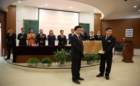 工商嘟嘟成人网 院长、党委副书记董进才与铭龙控股集团党委副书记、副总裁郭丰恩签署了党建共建协议,并为共建基地揭牌。