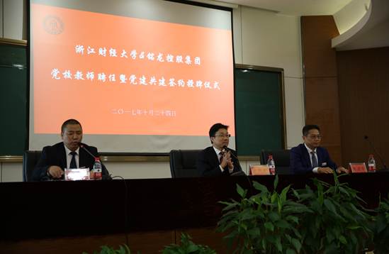 党的十九大描绘了新时代中国建设的新蓝图,对于进一步加强基层党组织建设提出了新要求。为深入学习贯彻落实十九大会议精神,拓展校企合作新领域,为党建发展寻求新活力,10月24日下午,工商嘟嘟成人网 举行了一场别开生面的主题党日活动,活动邀请到了浙江铭龙控股集团党委领导班子与全体支部书记一行共同参与,校党委副书记卢新波、组织部门负责人莅临现场指导工作。活动由工商嘟嘟成人网 党委书记黄卫华主持。