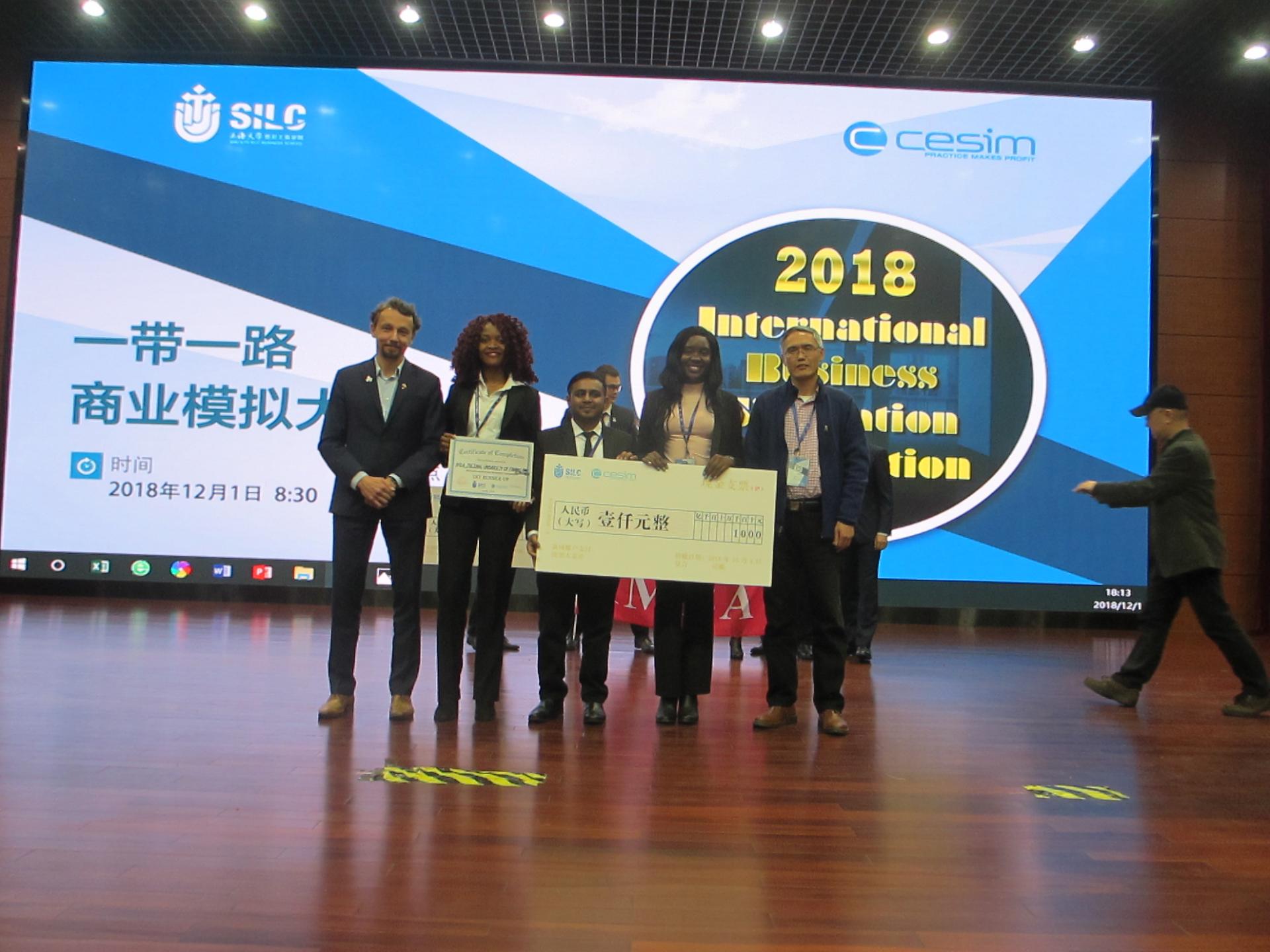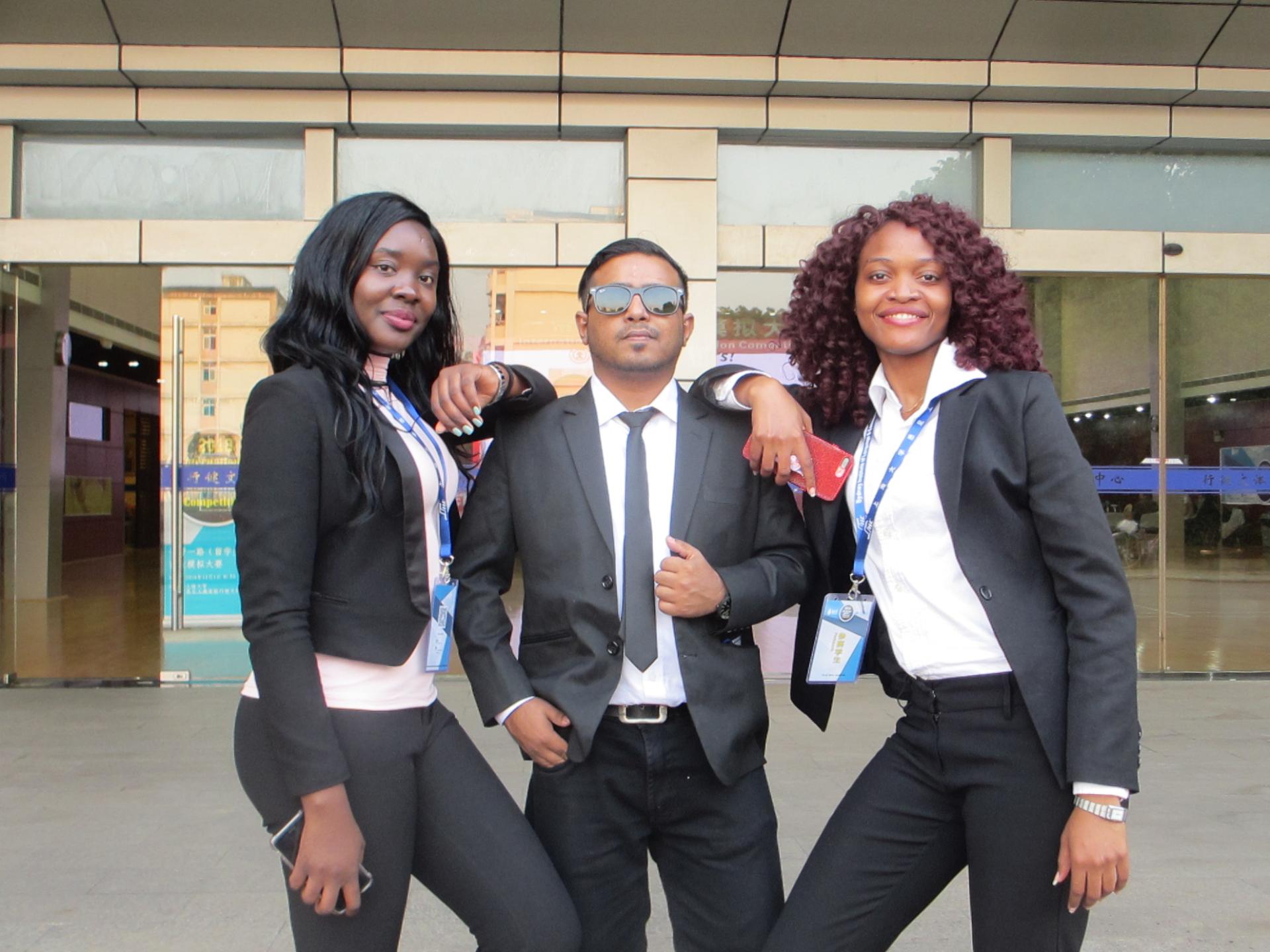 推荐的参赛队伍,18级企业管理专业研究生留学生MUSUIL MULAJ GRACIA(CONGOLESE)、DJATCHE KOUAKAM NELLY LARISSA(CAMEROONIAN)、MUNTASIR AL ABEDIN(BANGLADESHI),指导老师赵昶,通过重重考验,以专业、自信打动评委,在决赛中首次取得一等奖的喜人佳绩。