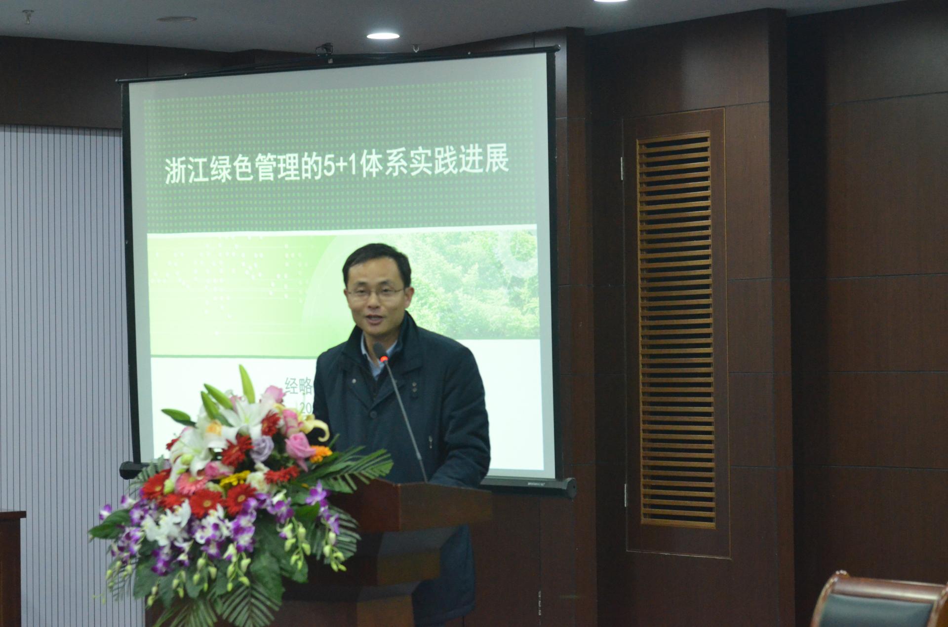 浙江省社会科学界联合会社科团体处王三炼处长代表浙江省社科联对本次会议的胜利召开表示祝贺,王三炼处长指出,2018年是贯彻党的十九大精神的开局之年,是改革开放40周年,是决胜全面建成小康社会、实现“十三五”规划承上启下的关键一年。在这样的新时代背景下,举行浙江绿色管理年会具有非常重要的意义。而本次年会的胜利召开必将有力地促进我省乃至我国绿色管理理论的进一步创新,也必将有力地推动我省乃至中国绿色管理实践的进一步进展。绿色消费、绿色创新、绿色人力资源、绿色治理等一系列绿色管理问题的研讨,在中国特色社会主义新时代下意义深远,责任重大。