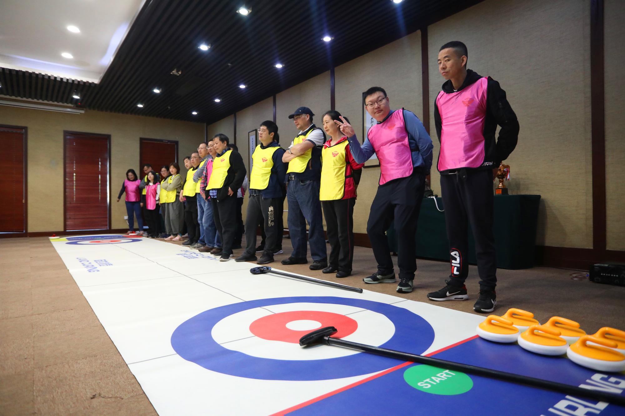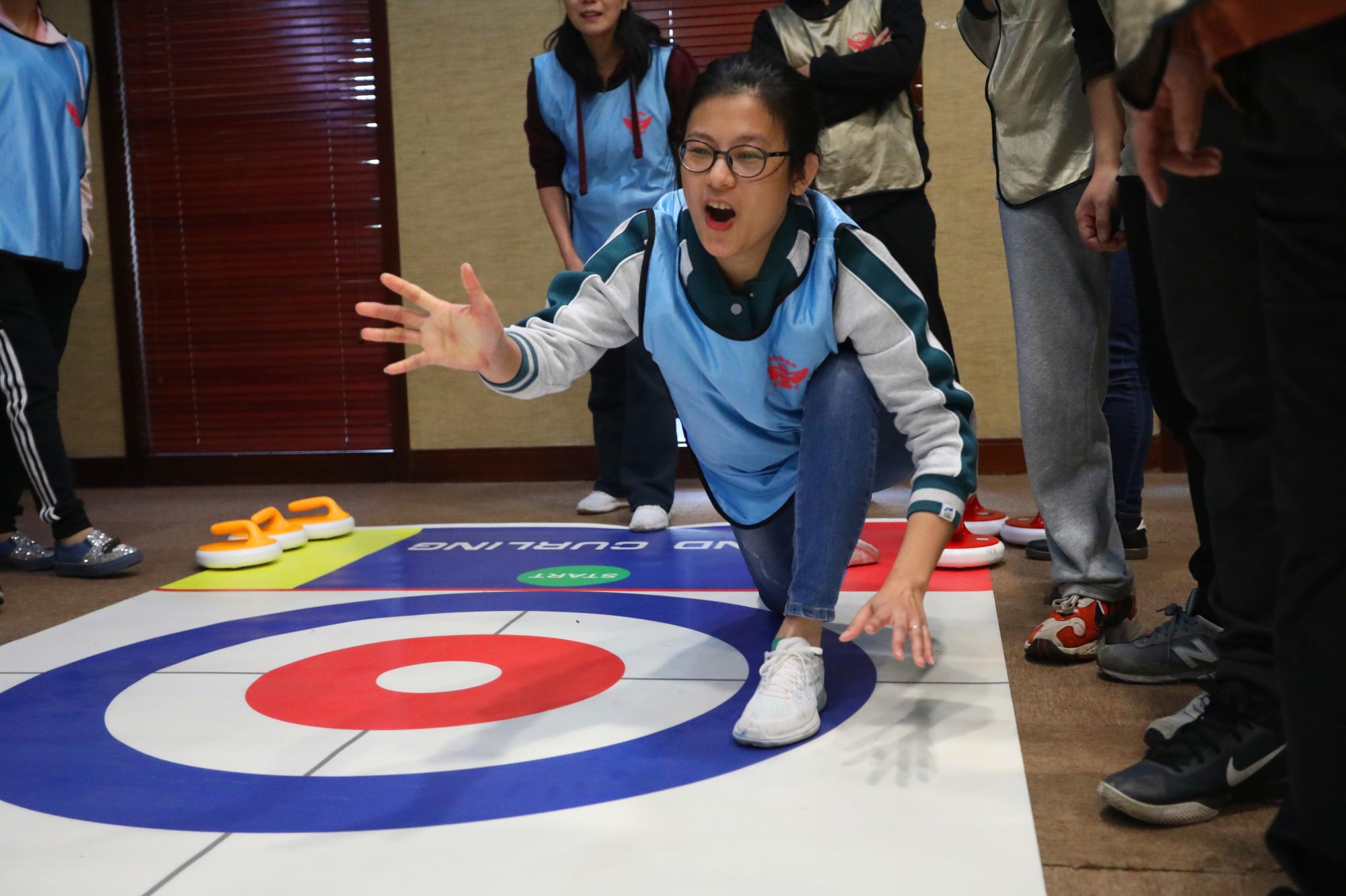 第四个项目是旱地冰壶。“陆冰壶”是由冰壶演变而来的“旱地冰壶球”。冰壶运动是一项高雅的体育健身活动,传统的冰壶是由特制的优质石材经过高精度研磨加工而成。传统的冰壶只能在光滑的冰面上进行,是一种冰上运动,并且是国际冬季奥林匹克运动项目,是一种集运动、竞技和娱乐于一体的运动项目。但由于冰壶制作工艺复杂,选材苛刻,所以费用高昂,且只能在冰面场地上开展,队场地的要求也很严格,从而极大地限制了此项运动的开展与普及。教师们在冰壶团建过程中,不断地计算并且实践,既开拓思维,又锻炼身体,更从中收获知识和快乐,并且延伸到教学工作与生活中去。