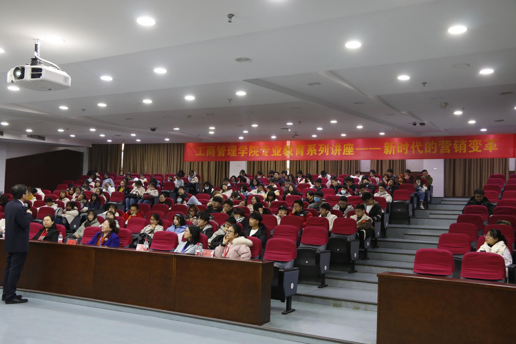 (MBA学院)特邀福州大学教授、硕导、教育部高校工商管理类专业教育指导委会委员陈章旺做“新时代的营销变革”主题讲座。讲座于12月5日下午在学术四报举行,学院沈渊、王跃梅、冯娟、杨雪老师,19级和20级市场营销、工商管理类专业200余学生参加。讲座由学院市营系主任陈颖主持。