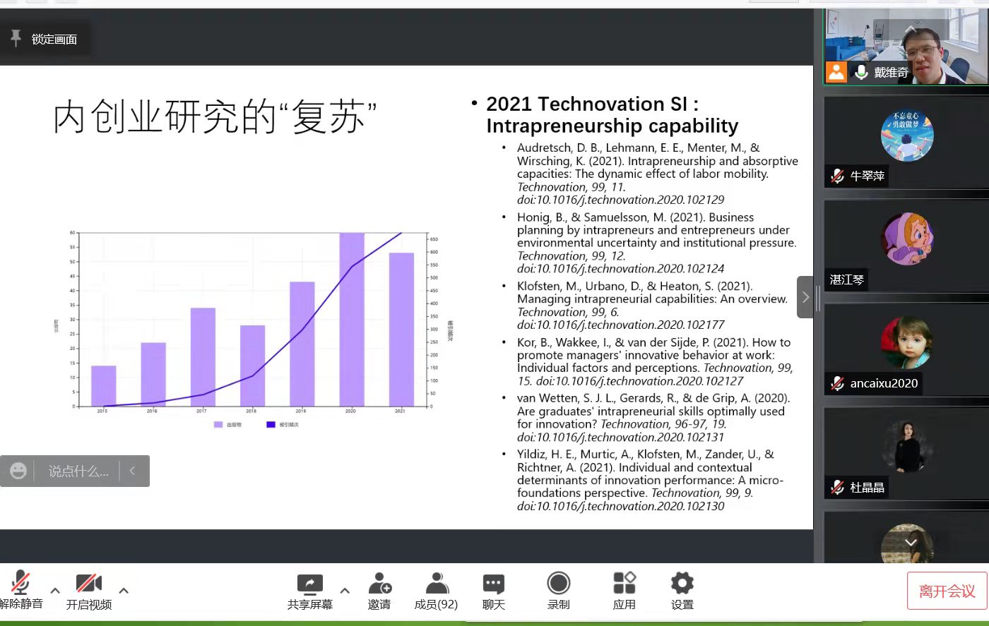 副院长戴维奇教授应邀为安徽财经大学师生做了一场题为《对中国情境下公司创业研究的若干思考》的线上学术报告。南开大学商学院张玉利教授对报告进行了专业点评。会议由安徽财经大学工商嘟嘟成人网