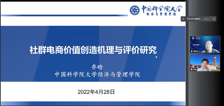 师生作了主题为《社群电商价值创造机理与效率评价研究》的学术讲座。报告通过腾讯会议线上进行,学院老师、研究生参与该讲座。本次讲座由副院长戴维奇教授主持。