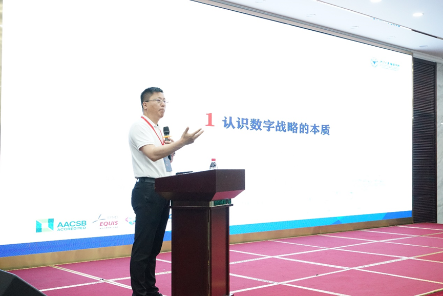 紧接着,王建明教授和戴维奇教授分别主持了四场主题报告。徐飞教授做了“创新创业与企业家精神”的主题演讲,他围绕“创新”“创业”“创新创业教育”这三个核心话题,强调创新创业教育对于个体、民族乃至国家的重大意义,点明创新创业永进不止。魏江教授带来了题为“数字创新与战略”的主题报告,他表示,企业战略的本质并未因数字时代的到来而改变,不过,随着数字技术的广泛应用,生产要素、产业组织形式、生产关系等发生了较大的变化,因而要求战略的形态进行改变。中国信息经济学会副秘书长兼数字经济创新联盟专业委员会主任、中山大学嘟嘟成人网