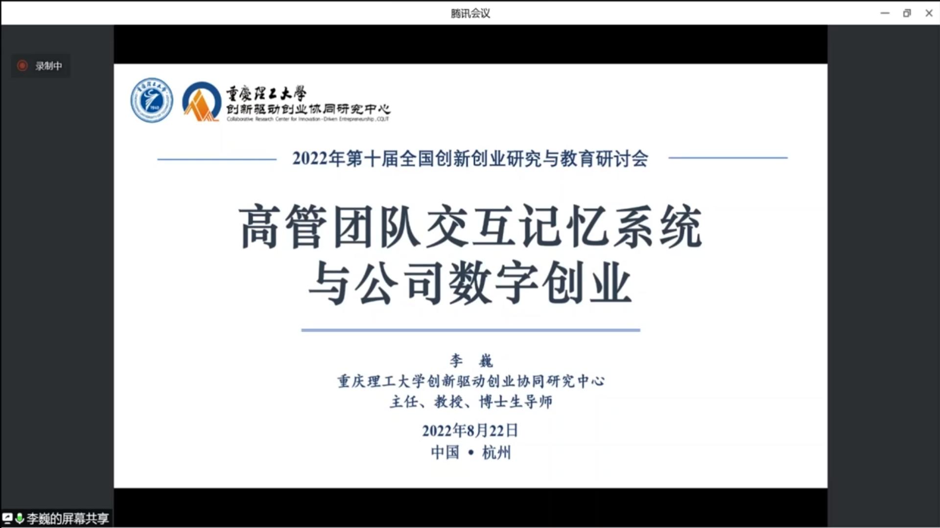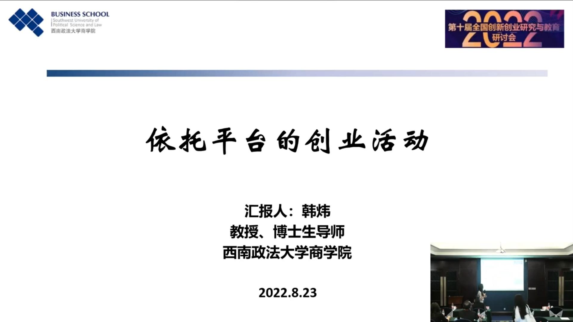 8月22日下午,第十届全国创新创业研究与教育研讨会平行论坛3在杭州百瑞运河大饭店准时召开。该论坛由西南政法大学韩炜教授和上海大学贾迎亚副教授主持,围绕创新创业机制研究展开。