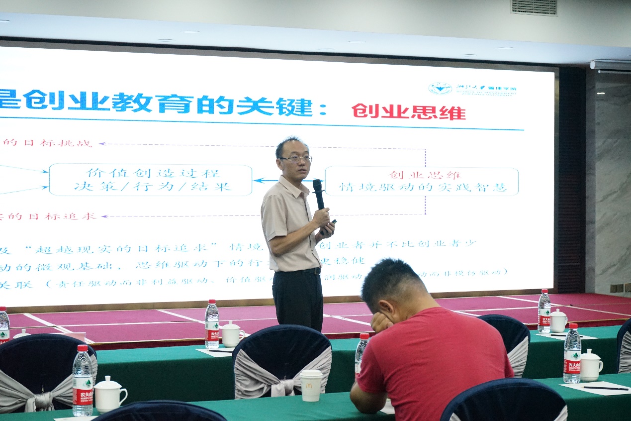 第四位分享的是来自子谦国际创业教育学院的朱燕空老师,他以“创业思维:创业者的七个习惯”为题进行了演讲。朱燕空老师首先讲述了他通过国际化的学习研究将创业思维课程本土化创新的历程,认为欲望激发、立即行动、意外转化、共情、共创、共赢、学会学习是创业者必修的七个习惯。其次,朱燕空老师指出要具有创业型领导力、创业型学习、创造喜爱的人生,就要把创业思维与职业生涯相结合。最后在交流环节,朱燕空老师跟与会者讨论了“在创业资源不足的情况下,如何应用创业思维实现创业目标”。
