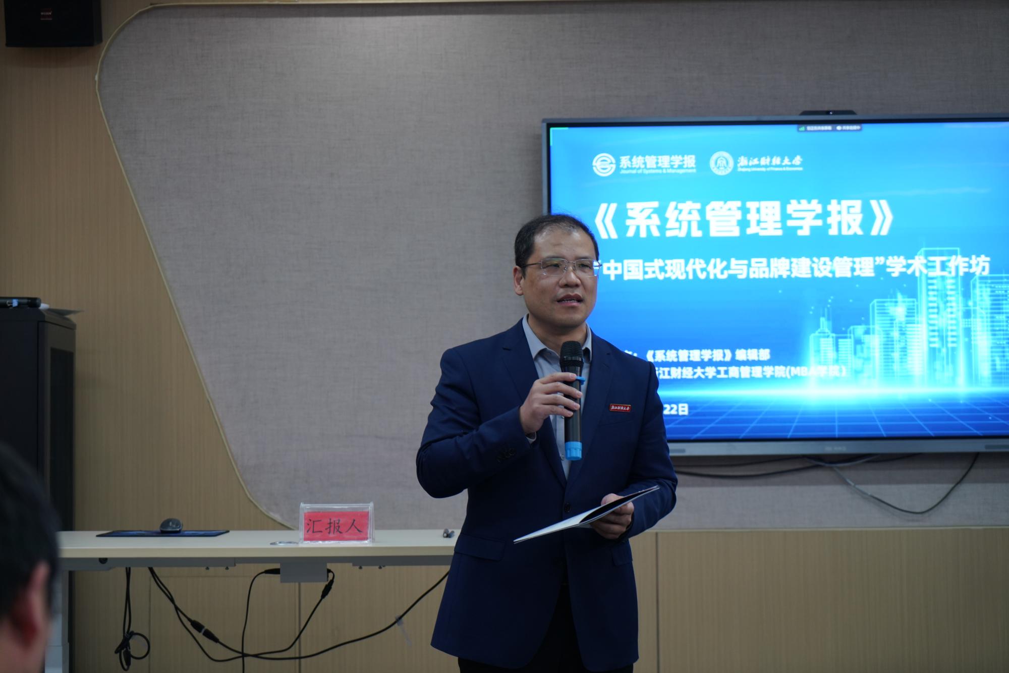 对各位专家学者的到来表示热烈的欢迎,并简单介绍了工作坊的基本情况。他表示,工作坊的主题是“中国式现代化与品牌建设管理”,加强品牌建设是满足人民美好生活需要的一个重要途径,本次会议的召开,对推动中国式现代化品牌建设管理的制度知识体系、学科体系及理论体系具有重要的意义。