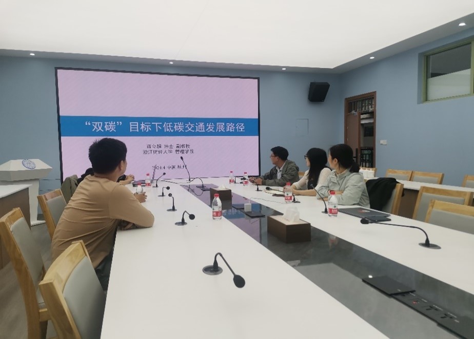 在5-416会议室举办了本学年第二期学术沙龙活动。供应链管理系的诸立超老师作了专题为“‘双碳’目标下低碳交通发展路径”的学术报告。