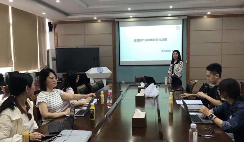 在5-415会议室举办了本学年第五期学术沙龙活动。电子商务系的杨亚老师作了专题为“易变质产品的库存优化决策”的学术报告。本次活动由电子商务系主任王鲁老师主持,电子商务系和信息管理系的各位老师出席了本次活动。