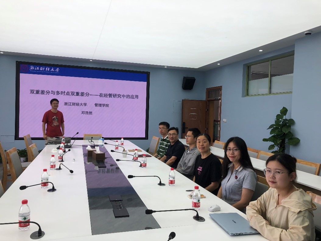 在5-416会议室举办了本学年第九期学术沙龙活动。企业管理系的邓浩然老师作了专题为“经典双重差分及多时点双重差分在经管研究中的应用”的学术报告。本次活动由数字化转型与创新研究中心主任孙凯教授主持,学术院长马祖军教授及嘟嘟成人网
