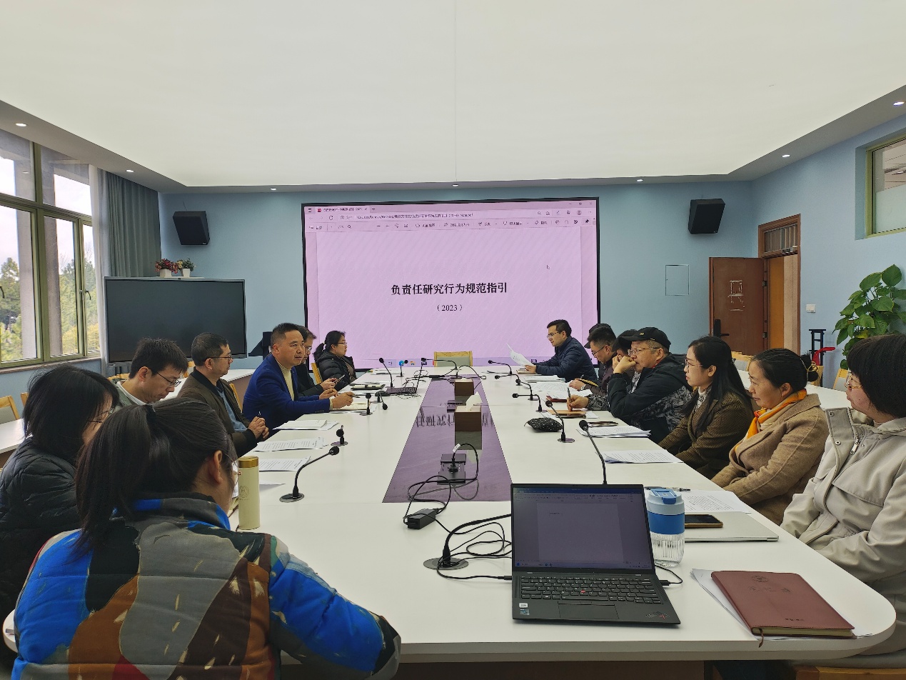 会上,学院副院长戴维奇教授详细介绍了学校科研处政策文件栏的科研诚信相关文件,并解读了《负责任研究行为规范指引(2023)》的核心内容,涵盖研究选题与实施、数据管理、文献引用、成果署名、成果发表、同行评议、伦理审查、学术交流与合作、知识产权保护、培养与指导以及监督管理等多个关键方面。特别强调了科研人员在研究选题时应避免简单重复和低水平研究,严格遵守科技伦理与安全规定;在数据管理上,要确保数据的完整、准确、可追溯,杜绝篡改和伪造数据;在成果发表与署名方面,必须遵循严格规范,杜绝挂名、冒名等不端行为等。