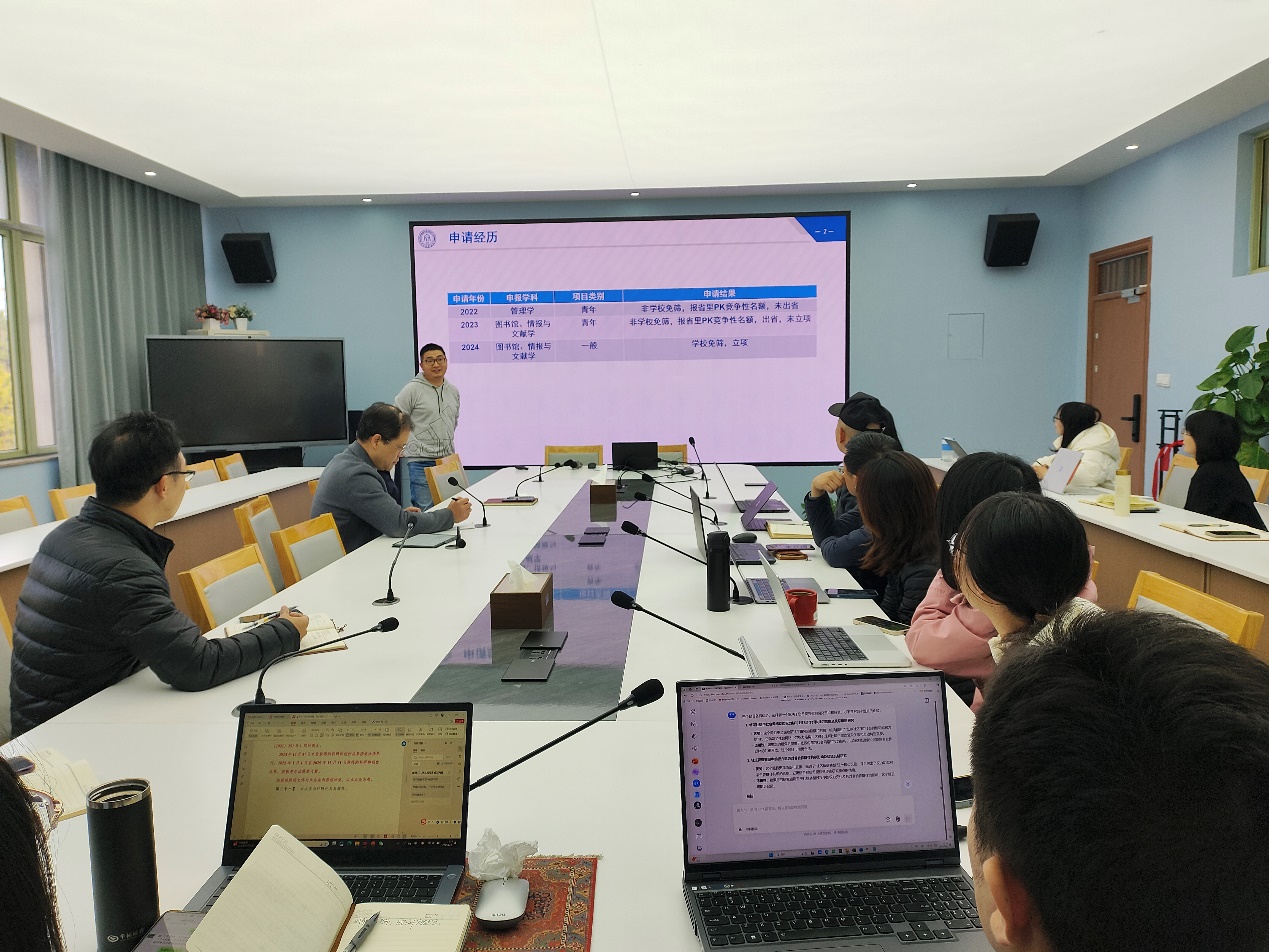 楼416会议室举行2025年国家科研项目申报经验分享会。学院邀请马祖军教授、刘维树副教授分享国家科研项目申报经验,会议由戴维奇教授主持,学院20余名教师参会。