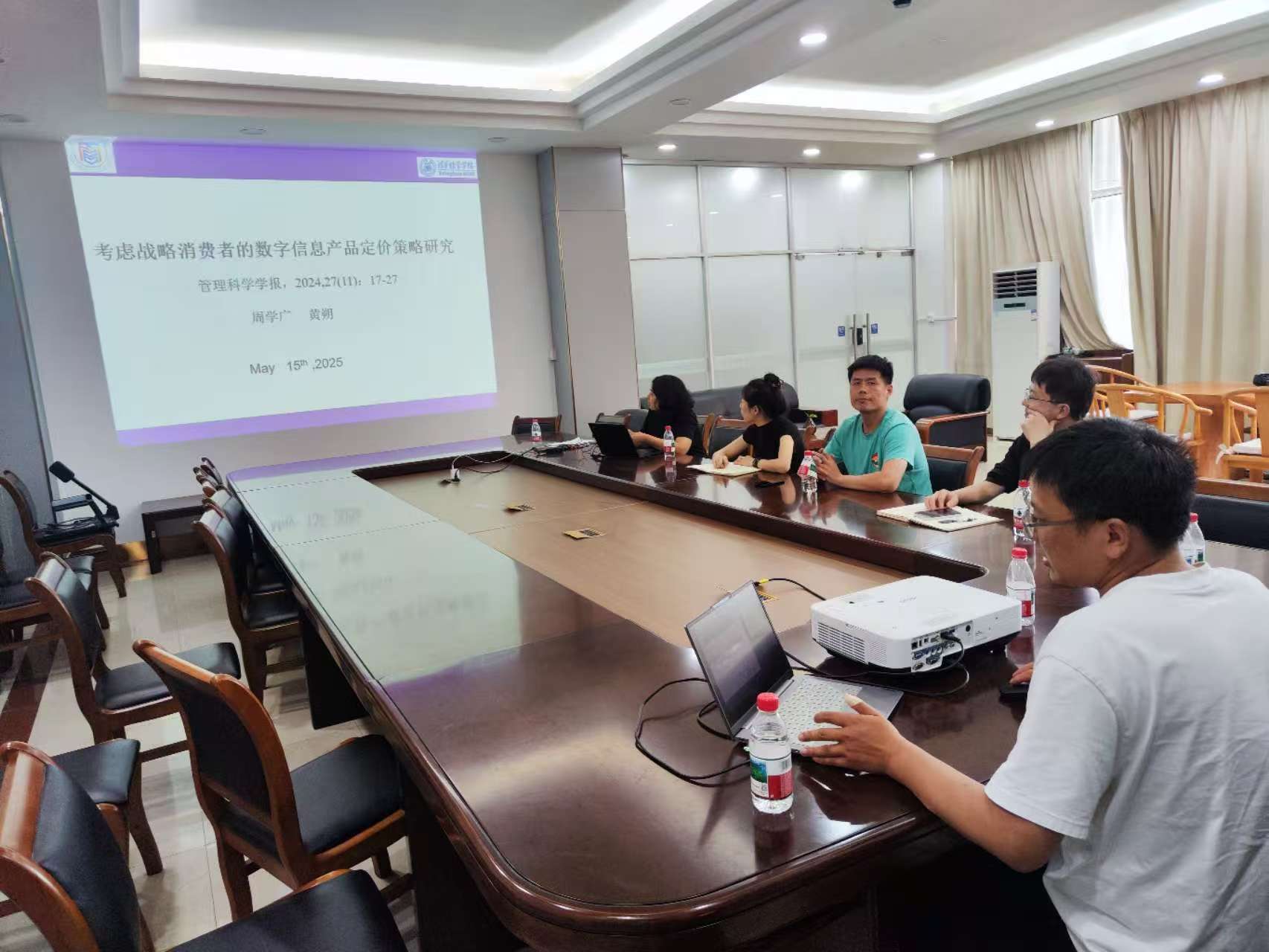 周学广老师作了专题为“考虑战略消费者的数字信息产品定价策略研究”报告。本次活动由雷婷老师主持,供应链管理系主任李晓超和各位老师出席了本次活动。