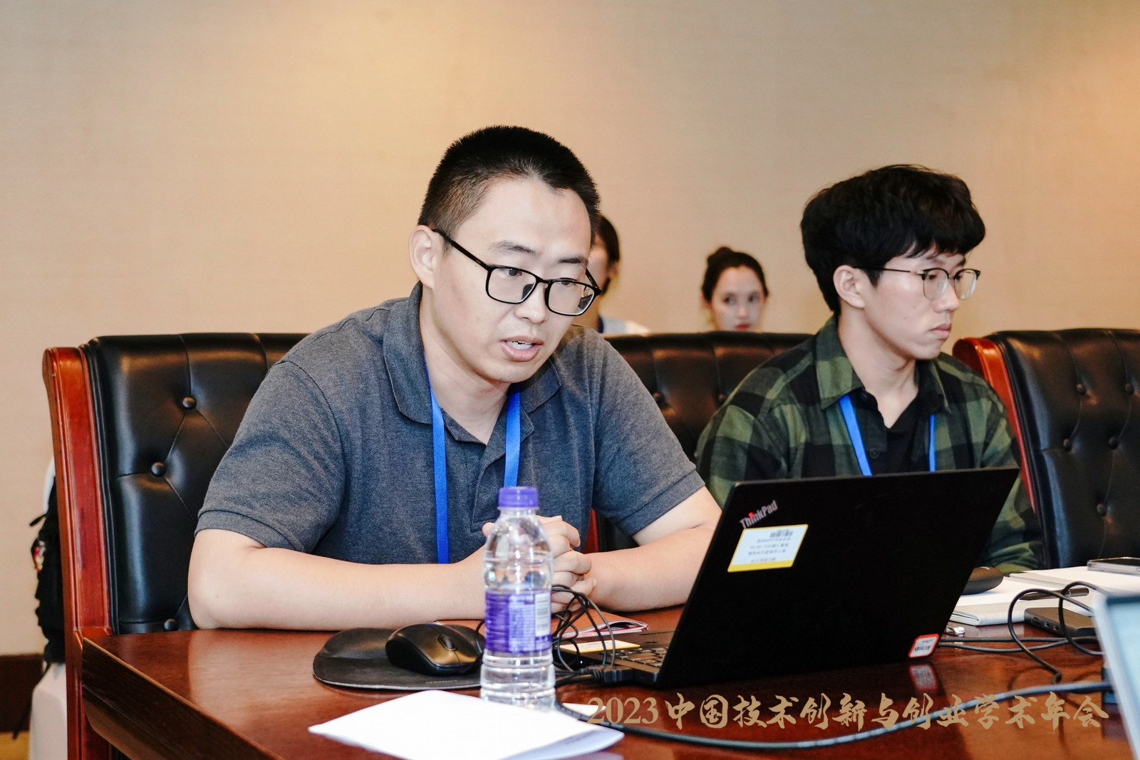 第四位汇报者是来自北京工业大学的夏兵。他作了题为“利润目标vs.生存目标:资金限制下新创企业产品绿色投资策略及支持政策研究”的主题汇报。他运用二十大报告中有关“绿色发展的财税体系”的相关内容引出了文章的核心问题。文章围绕资金约束和市场风险对新创企业的产品绿色投资会产生何种影响以及政府如何选择合适的政策工具,才能更有效地支持新创企业的绿色投资这两个问题提出假设并建立模型进行分析。
