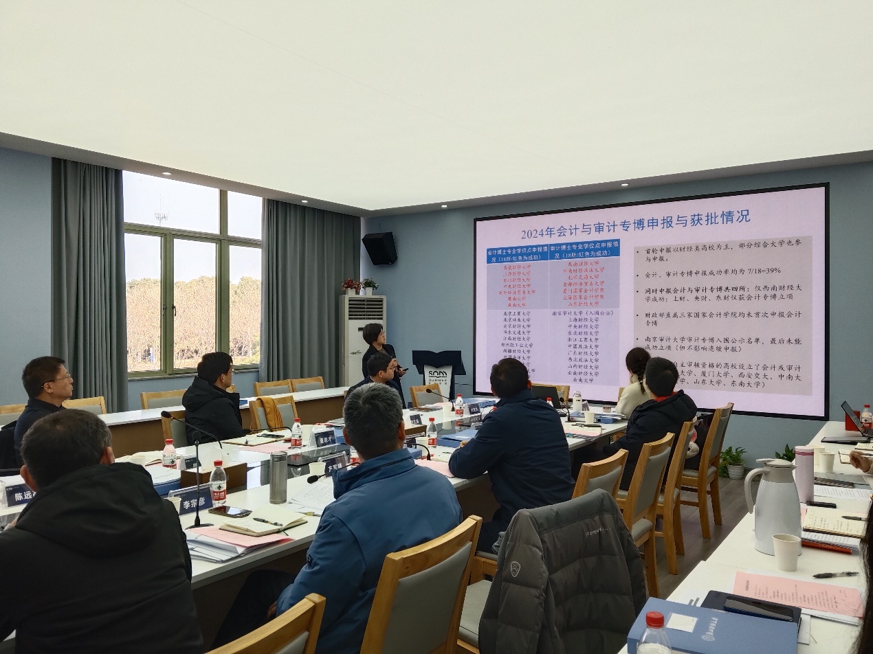 会议第二项议程是会计与审计专博申报。李文贵教授汇报会计与审计专博申报情况,包括竞争形式分析、自身优势与挑战分析、学科方向的设置等。魏江教授强调学科还是要以内涵发展为主,挖掘自身潜力和特色。董进才教授指出会计学院相关学科骨干应当抓紧申报前的时间空档增加标志性成果的产出。