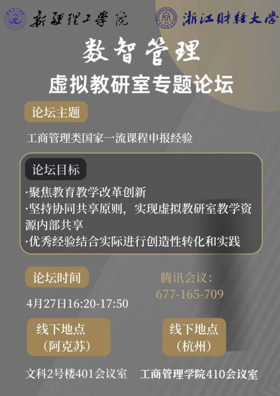 数智管理虚拟教研室:一是要聚焦教育教学改革创新,始终坚持“四个回归”,全面落实立德树人根本任务;二是要坚持协同共享原则,注重多元性和主体性,实现虚拟教研室各类教学资源的内部共享;三是要促进教师教学发展,活动开展常态化和专题性,将教研室的优秀经验结合实际进行创造性转化和创新性实践。