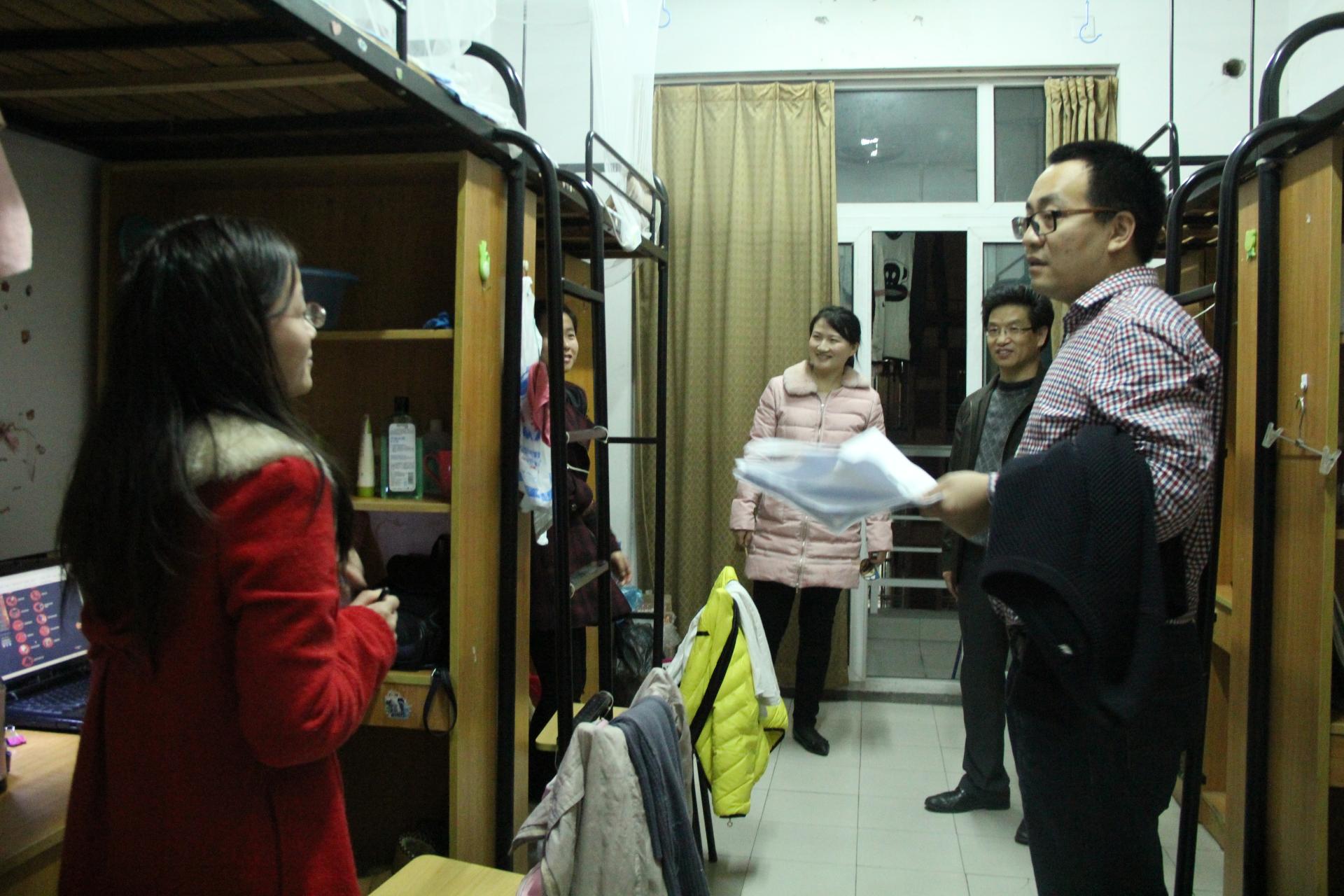 文明寝室建设,积极配合省教育厅到我校全面检查工作,学院领导于2016年3月7日晚到成蹊苑生活园区进行了寝室大检查,参加此次检查工作的领导有学院院长董进才老师、党委书记黄卫华老师、副院长谢敏老师,以及学办主任胡星平老师、团委书记刘远琳老师以及辅导员俞佳、喻一珺、余亮等老师。他们分别对成蹊苑51#、49#、57#、31#、44#、48#等工商嘟嘟成人网