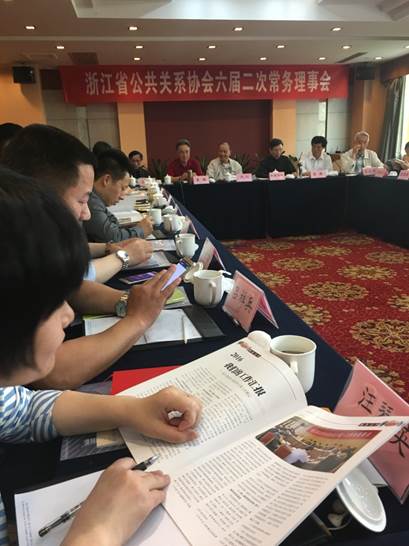 2017年5月6日,浙江省公共关系协会在杭州星都宾馆举行六届二次常务理事会。会议由常务副会长蔡捷主持,申屠章银会长传达省社科联有关文件精神,袁超执行会长总结2016年度协会主要工作情况,部署2017年度主要工作任务,李远兵副会长通报新增常务理事名单。市场营销系陈颖老师作为常务理事参加本次会议。