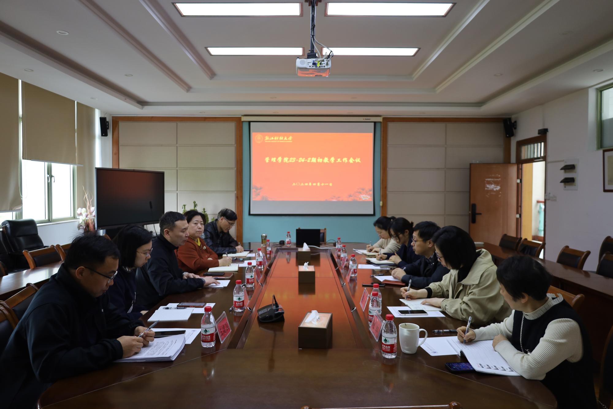 4月11日上午在学院楼410,召开了23-24-2学期期初本科教学工作会议。参加人员有:张雷、沈渊、陈颖、王建国、赵昶、张维维、李晓超、王鲁、王婉茹、赵红等老师,会议由张雷副院长主持,主要学习了落实学校“新财经”战略行动方案内容和布置本学期教学中心工作。