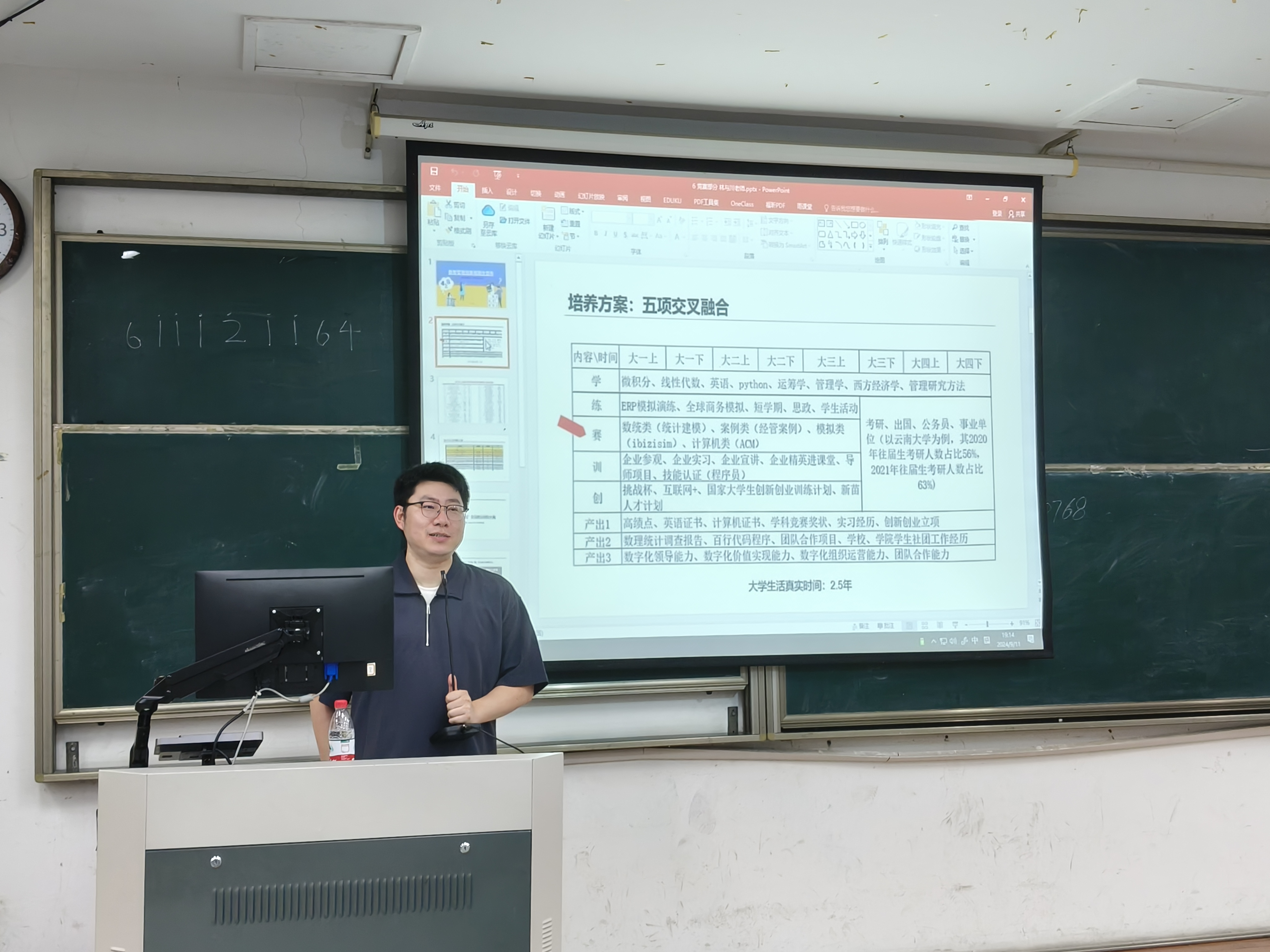 学科竞赛负责人林与川老师详细介绍了数智管理创新班在竞赛方面的相关情况,他具体阐述了班级在组织参赛、资源配备、专业指导等方面的优势,并热情鼓励同学们把握机会,积极参与各类竞赛活动,通过实践锻炼提升自身的创新能力和实际操作技能。