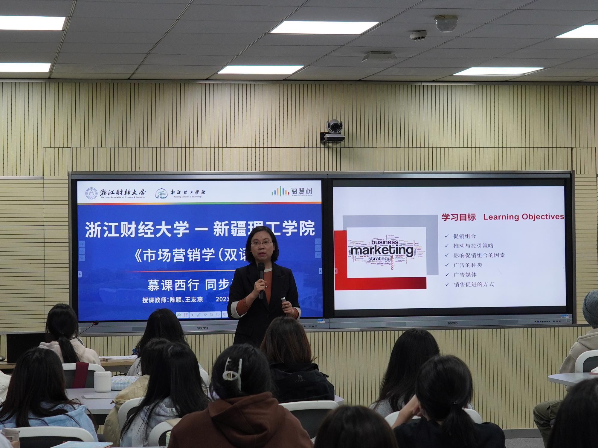 与新疆理工学院就《市场营销学(双语)》课程,通过智慧树平台开展了跨越4700公里的同步课堂活动,得到两校师生高度好评。