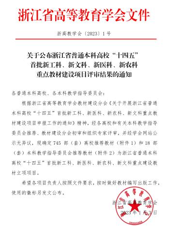 近日,浙江省高等教育学会公布省普通本科高校“十四五”新工科、新文科、新医科、新农科重点教材建设项目评审结果,嘟嘟成人网