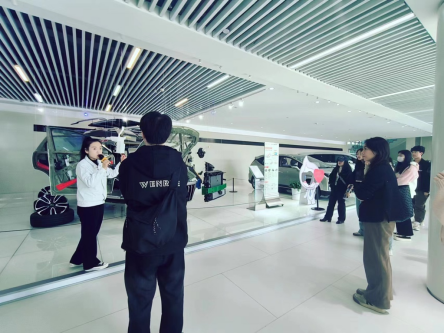 本次参访,同学们满怀热情与好奇,首先来到了广乘杭州公司智能制造旅游文化馆,认真聆听了讲解人员对广汽传祺的品牌历史、经典车型、车辆构造、及创新功能等方面的详细介绍,并上车亲身体验了传祺E9、Z03、V09等热门车型的先进功能。