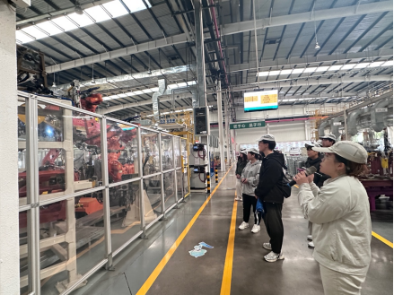 随后,同学们进入了焊装车间进行了参观,近距离感受了视觉引导机器人发挥的重要功能,目睹了高柔性车型切换的精密之处,见识了焊点数字化监控的精确性。