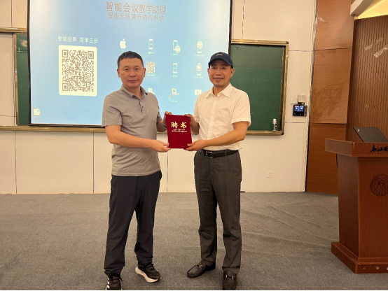 副院长张雷向肖和成先生颁发了“职业经理人”社会导师聘书,期待肖总带来更多的校企合作精彩内容。肖和成先生愉快地接受了社会导师聘书并表示会一如既往地奉献给师生更多的企业营销实践知识。