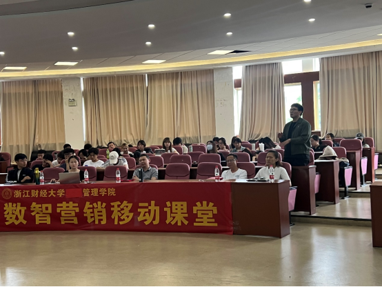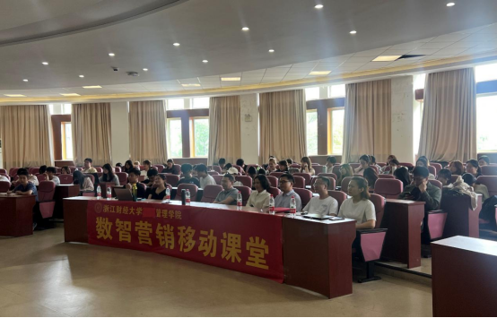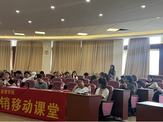 副院长张雷、《市场营销学》课程组田庆宏老师、冯娟老师,来学院访学的新疆理工学院程登军老师、李丽霞老师和21市营、22工商类、22艺术经济、22视觉传达设计等班级110余位同学参与本次数智营销移动课堂。