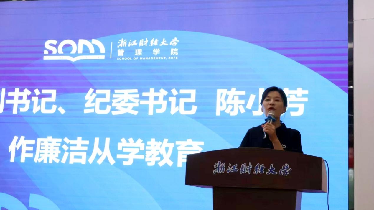 最后,学院党委副书记、纪委书记陈小芳同步为新生开展廉洁从学教育。她结合高校学术违规典型案例,围绕“明底线、知敬畏”核心,聚焦作业独立完成、考试诚信、科研规范等关键环节,清晰解读廉洁从学的具体要求,同时针对评奖评优、学生活动等校园场景,提醒新生警惕不良风气,将廉洁意识融入日常。生动的案例与恳切的叮嘱,帮助新生筑牢思想防线,为扣好大学“第一粒扣子”提供了明确指引。